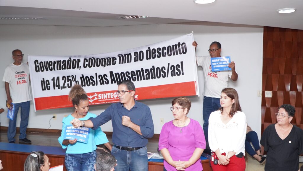 Em ato público realizada na manhã desta quarta-feira, 24, com a presença de servidores aposentados de todo o estado, a deputada Bia de Lima (PT), que também preside o Sindicato dos Trabalhadores em Educação de Goiás (Sintego), cobrou novamente o fim da taxação de 14,25% do grupo para o fundo previdenciário.