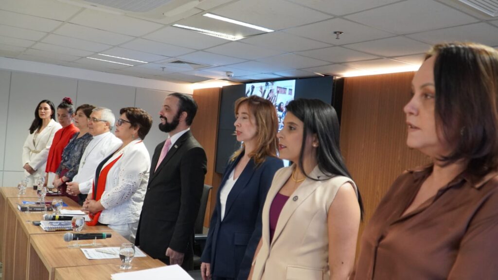Também participaram da mesa: a secretária de Projetos Especiais da Procuradoria da Mulher da Casa, Cristina Lopes, representando o presidente da Casa, deputado Bruno Peixoto; a representante da Coordenadoria da Mulher do TJGO, Simone Pedra Reis; a líder do grupo Mulheres do Brasil – Núcleo Goiânia, Elaine Maria de Moura; a diretora-adjunta da Escola Superior de Advocacia de Goiás, Mariana Dias; e a promotora da 44ª Promotoria do MPGO, Emiliana Rezende de Souza Medeiros.